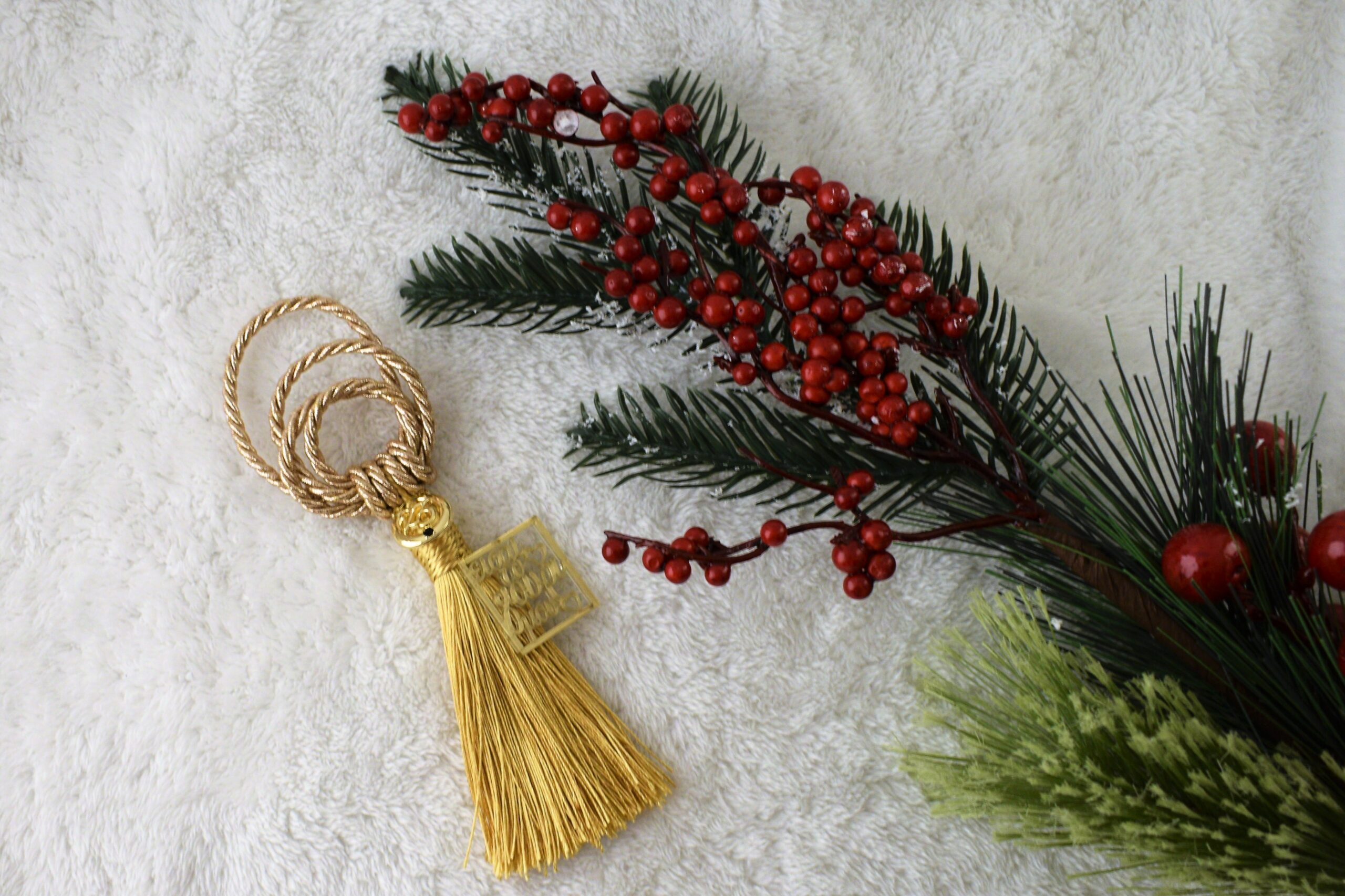 Κρεμαστό γούρι με σχοινί 3mm πλεγμένο με ιδιαίτερο δέσιμο σε χρυσό χρώμα και χρυσή φούντα. Επίσης αποτελείται από ατσάλινο στοιχείο “24” και plexiglass στοιχείο το οποίο έχει διάτρητη κοπή την έκφραση “είσαι το γούρι μου”.