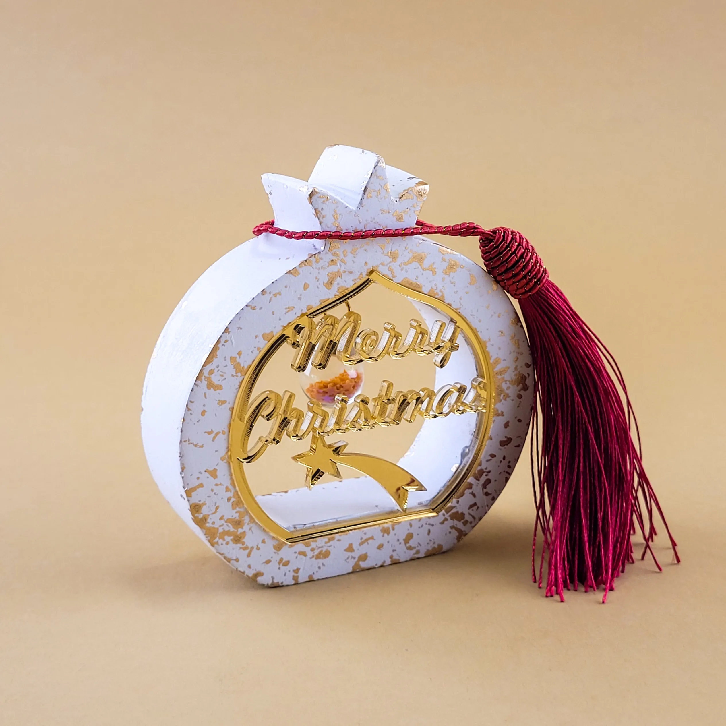Προσθέστε ζεστασιά και γιορτινή ατμόσφαιρα στον χώρο σας με αυτό το υπέροχο κεραμικό διακοσμητικό. Η φράση «Merry Christmas» σε χρυσό plexiglass συνδυάζεται άψογα με τη λευκή κεραμική βάση και την κόκκινη διακοσμητική φούντα. Το προσεγμένο χειροποίητο design το καθιστά ιδανικό για διακόσμηση τραπεζιού, τζακιού ή για ένα ιδιαίτερο δώρο στις γιορτές.