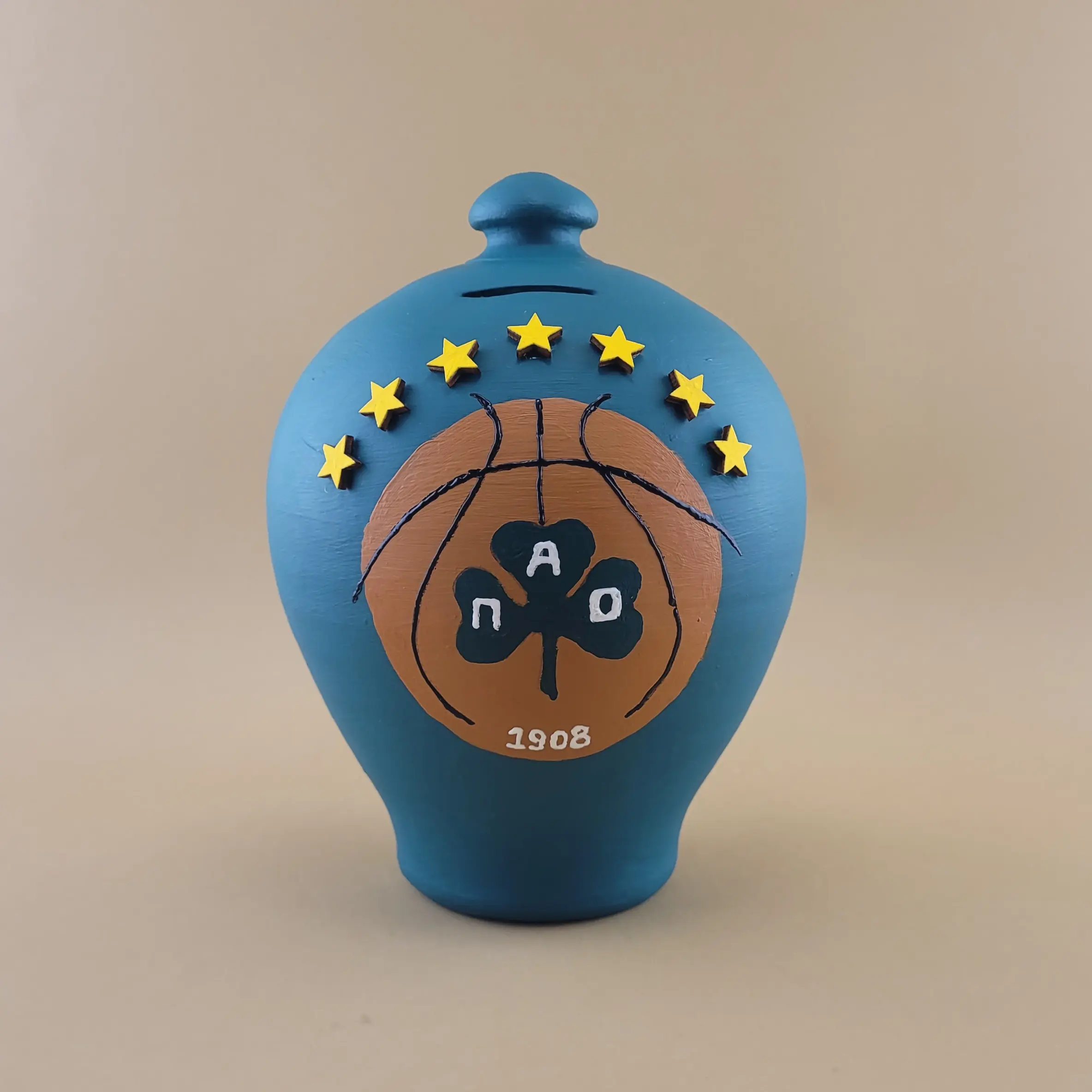 ☘️ Ανακαλύψτε τον επτάστερο μοναδικό πήλινο κουμπαρά, ζωγραφισμένο στο χέρι, τον απόλυτο κουμπαρά του Παναθηναϊκού 7 ⭐️ στο μπάσκετ! Αυτός ο χειροποίητος πήλινος κουμπαράς είναι διακοσμημένος με ζωγραφισμένο στο χέρι το έμβλημα της αγαπημένης σας ομάδας, συμπεριλαμβανομένου του νέου αστεριού για το πρόσφατο Ευρωπαϊκό Πρωτάθλημα και των επτά αστεριών που αντιπροσωπεύουν τις κατακτήσεις των συνολικά επτά Ευρωπαϊκών Πρωταθλημάτων.