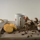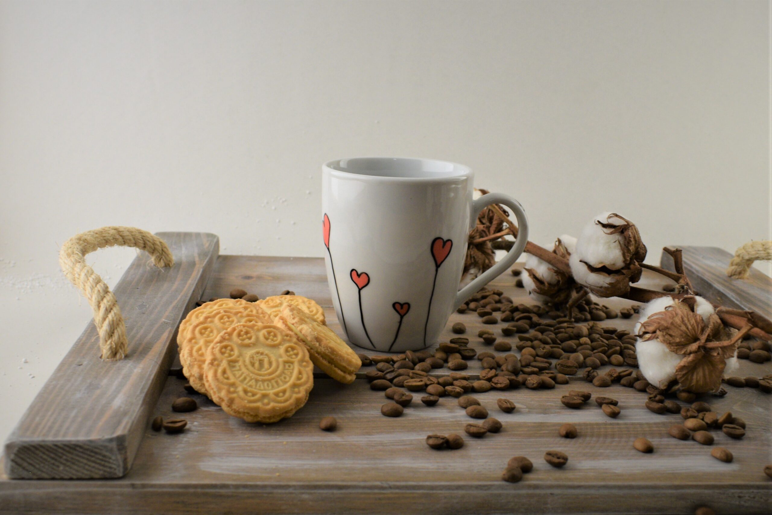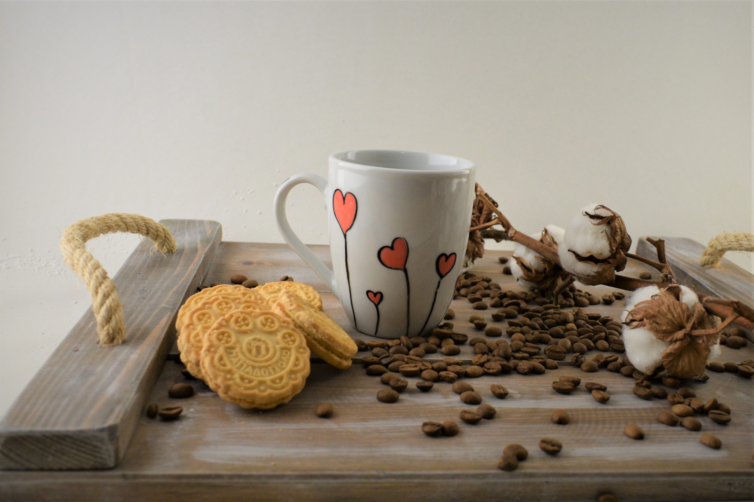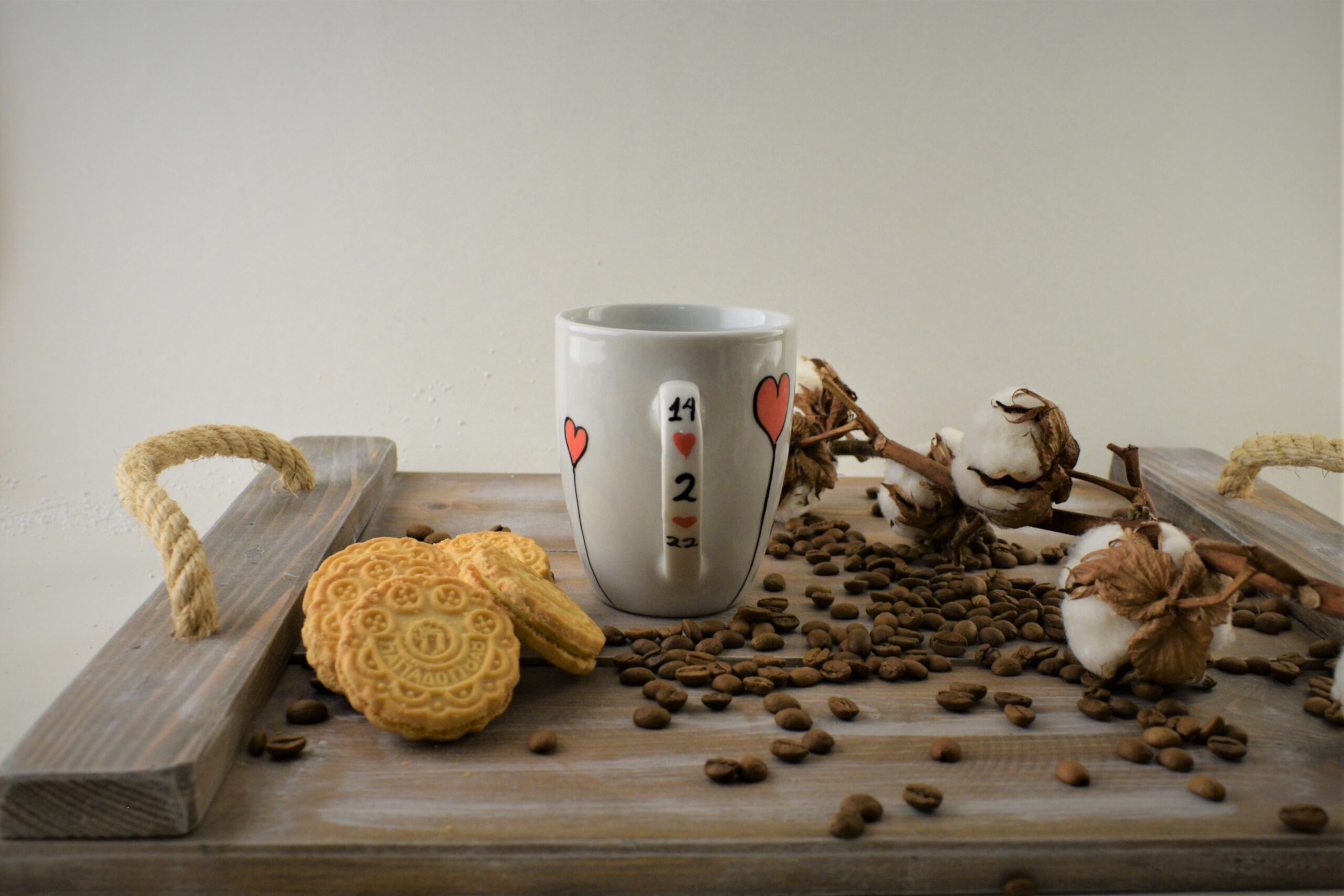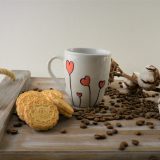 Κούπα ζωγραφισμένη στο χέρι με καρδίες και ημερομηνία στο χερούλι της κούπας. Κάντε τους αγαπημένους σας να ξεκινήσουν την ημέρα τους με χαρά με το μήνυμα σας!