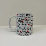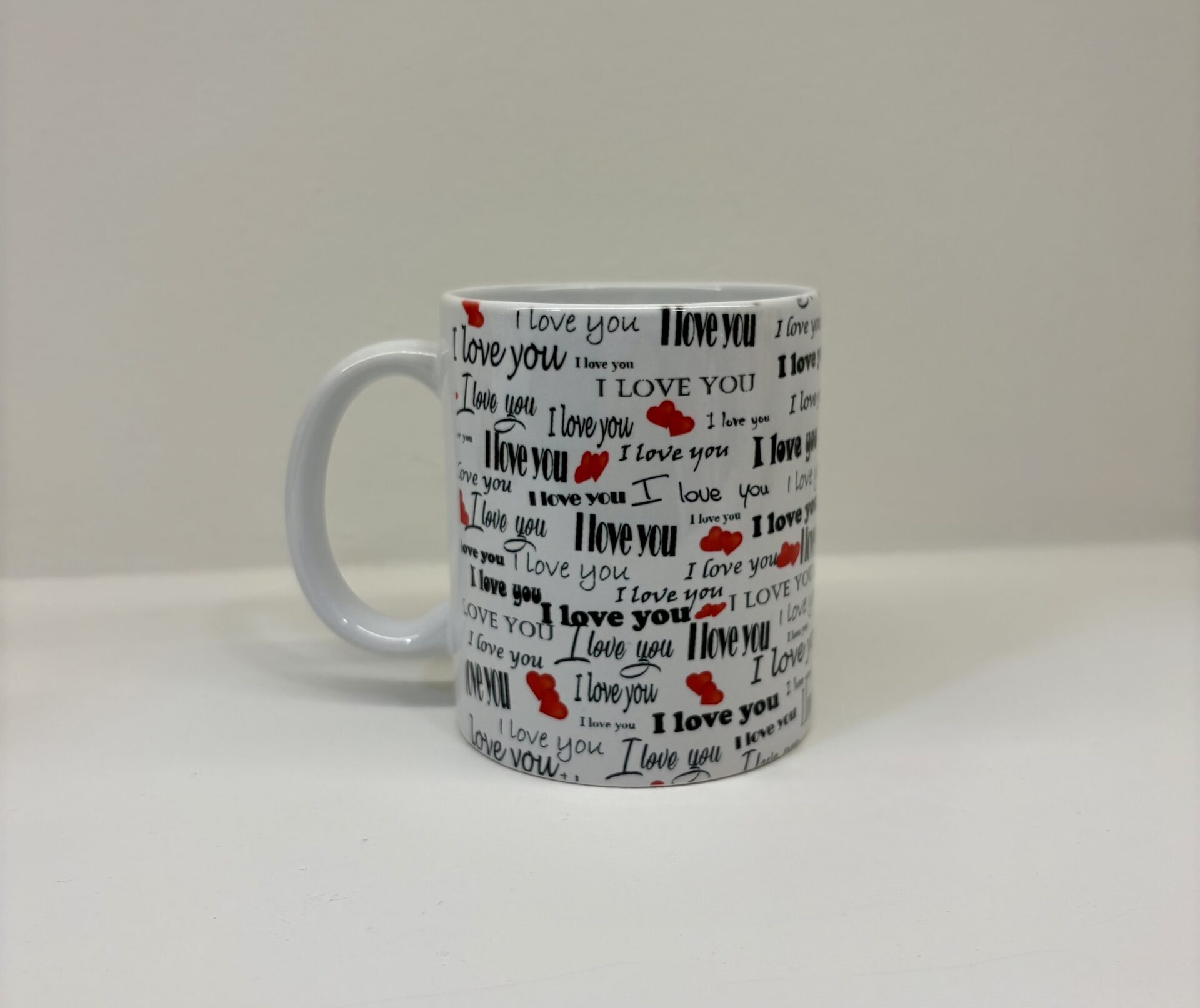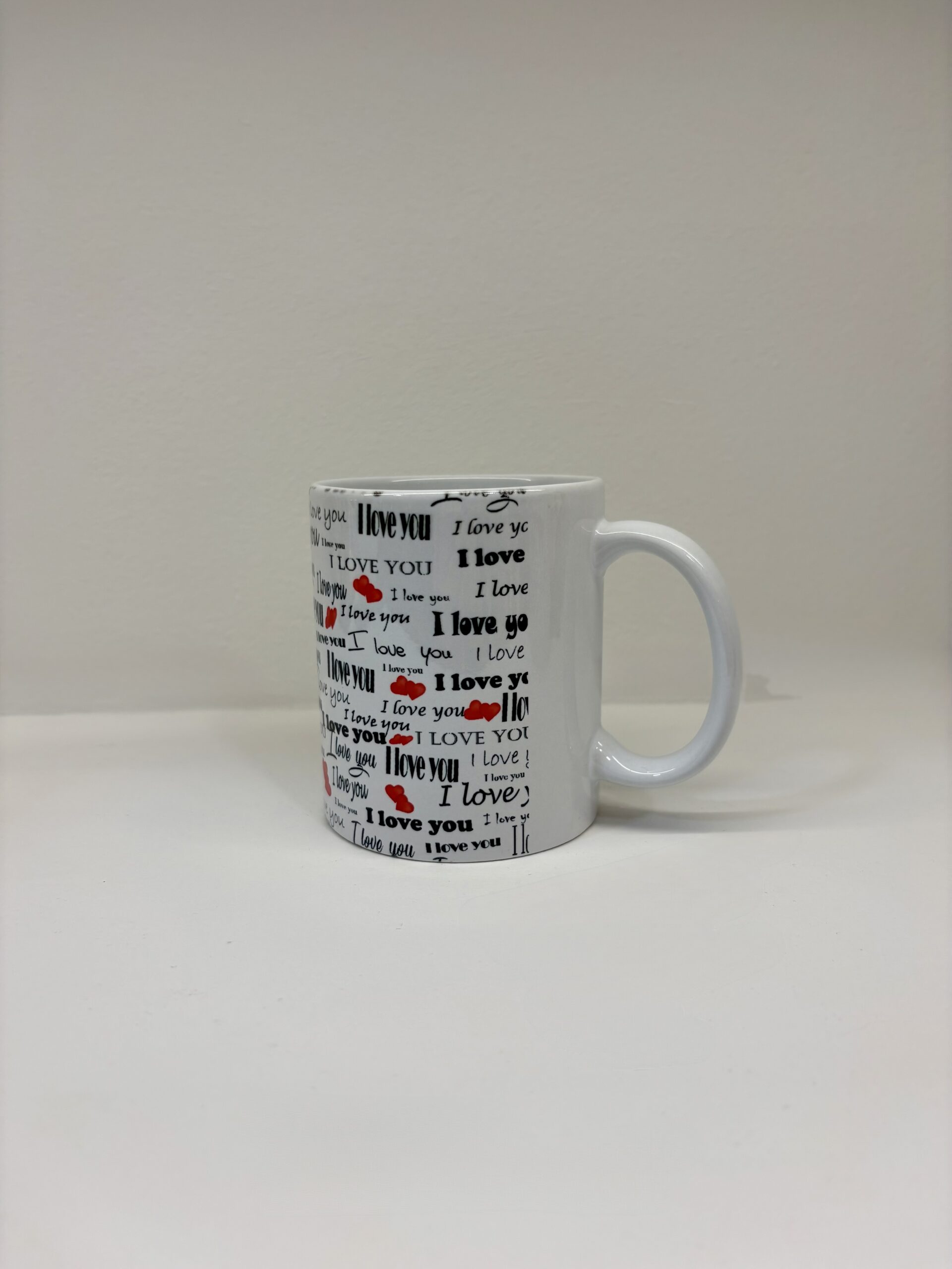 Η κούπα “I Love You” είναι γεμάτη με το πιο όμορφο μήνυμα αγάπης, επαναλαμβανόμενο σε διαφορετικά γραφικά στυλ και διακριτικές κόκκινες καρδιές.