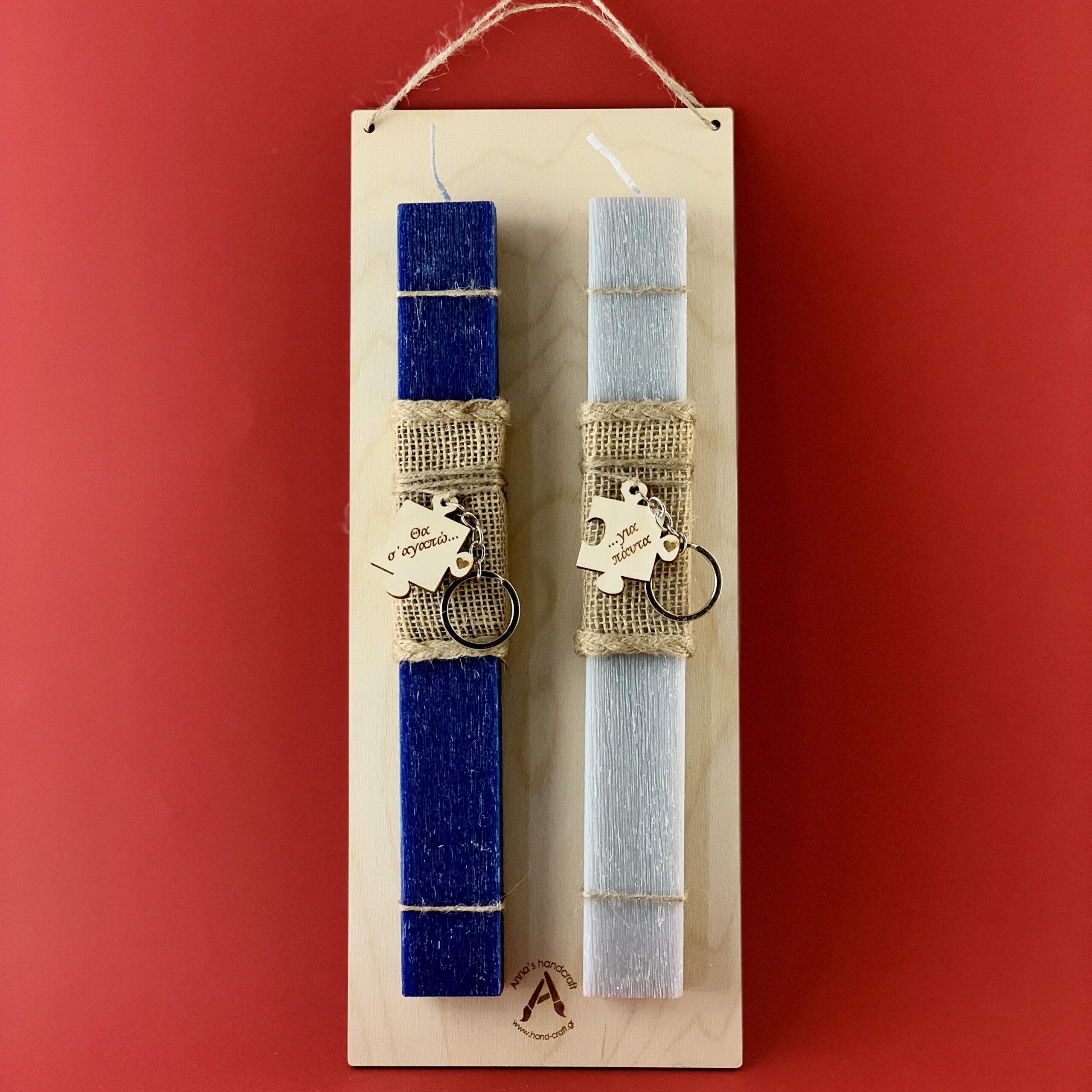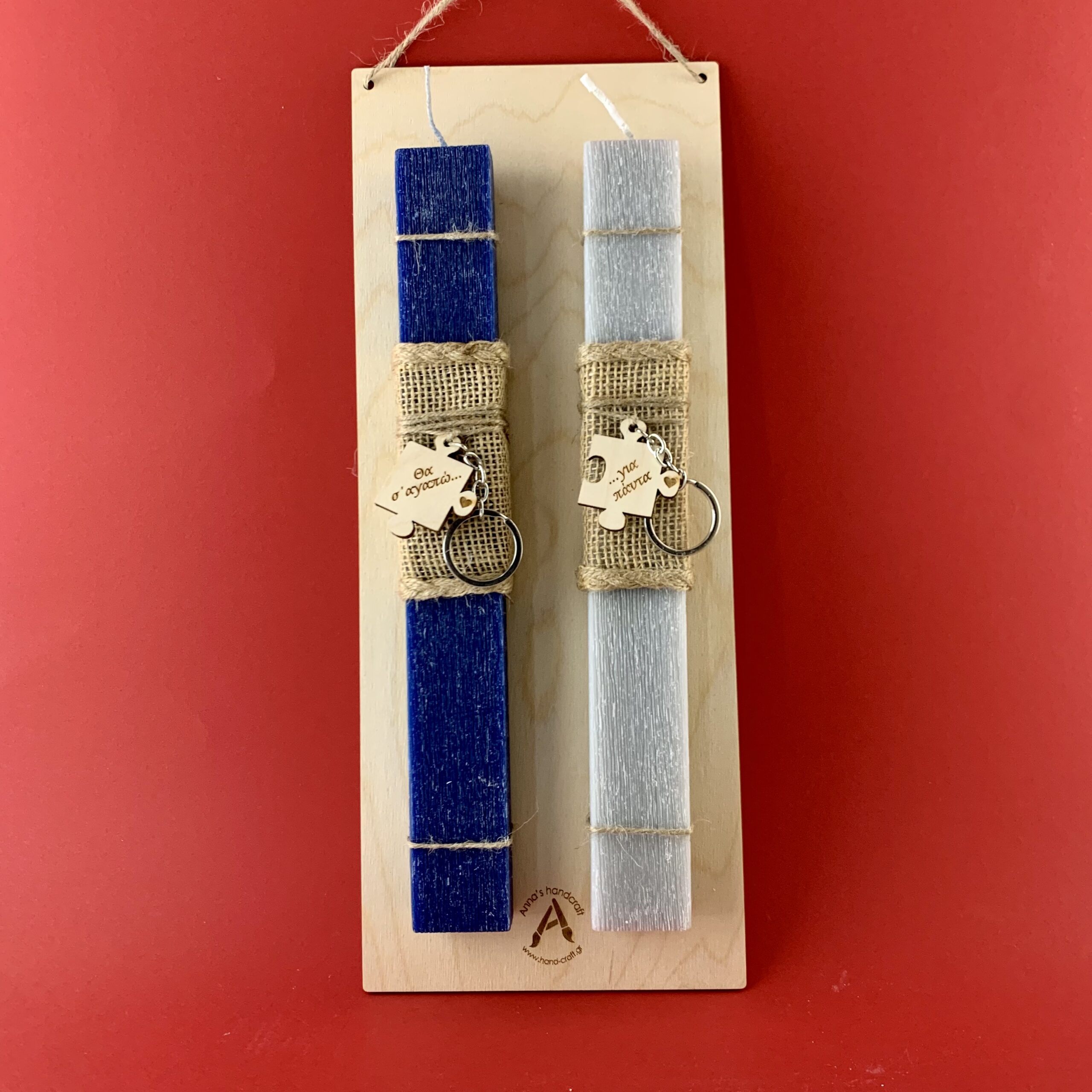Χειροποίητες αρωματικές πασχαλινές λαμπάδες διακοσμημένες με ξύλινη βάση και με ξύλινα μπρελόκ ”θα σ´αγαπω..για πάντα”!