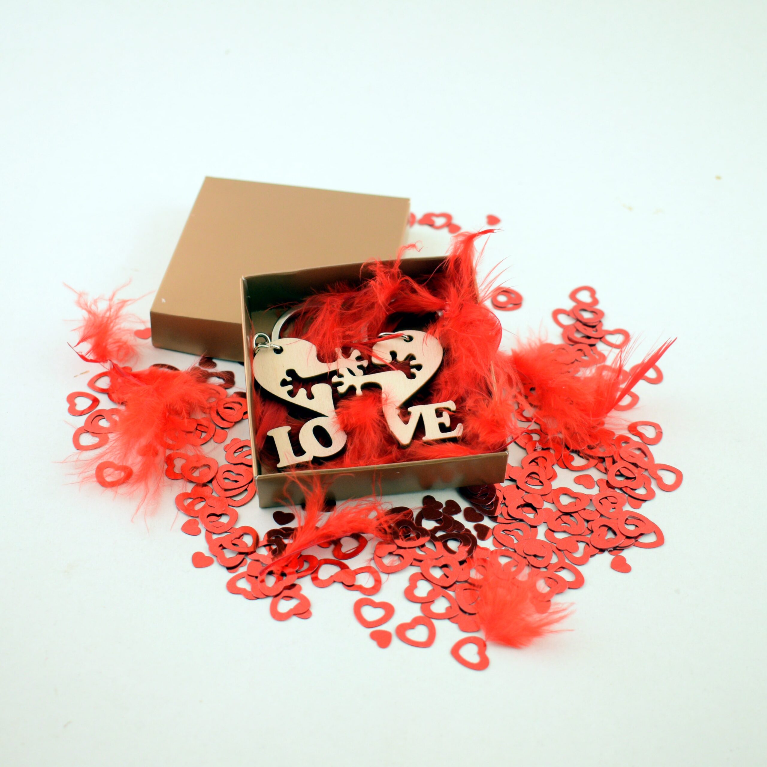 Ξύλινο μπρελόκ σε σχέδιο αγκαλιά και το μήνυμα LOVE!