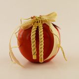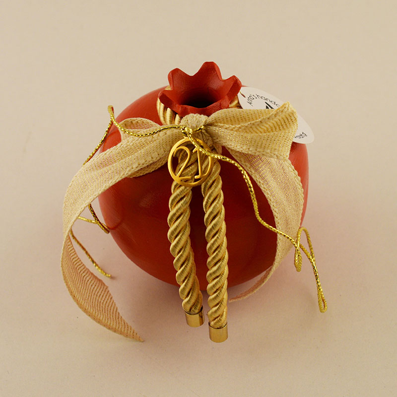 Χειροποίητο πήλινο γούρι ρόδι σε κόκκινο χρώμα, χρυσή κορδέλα και ατσάλινο ”21”