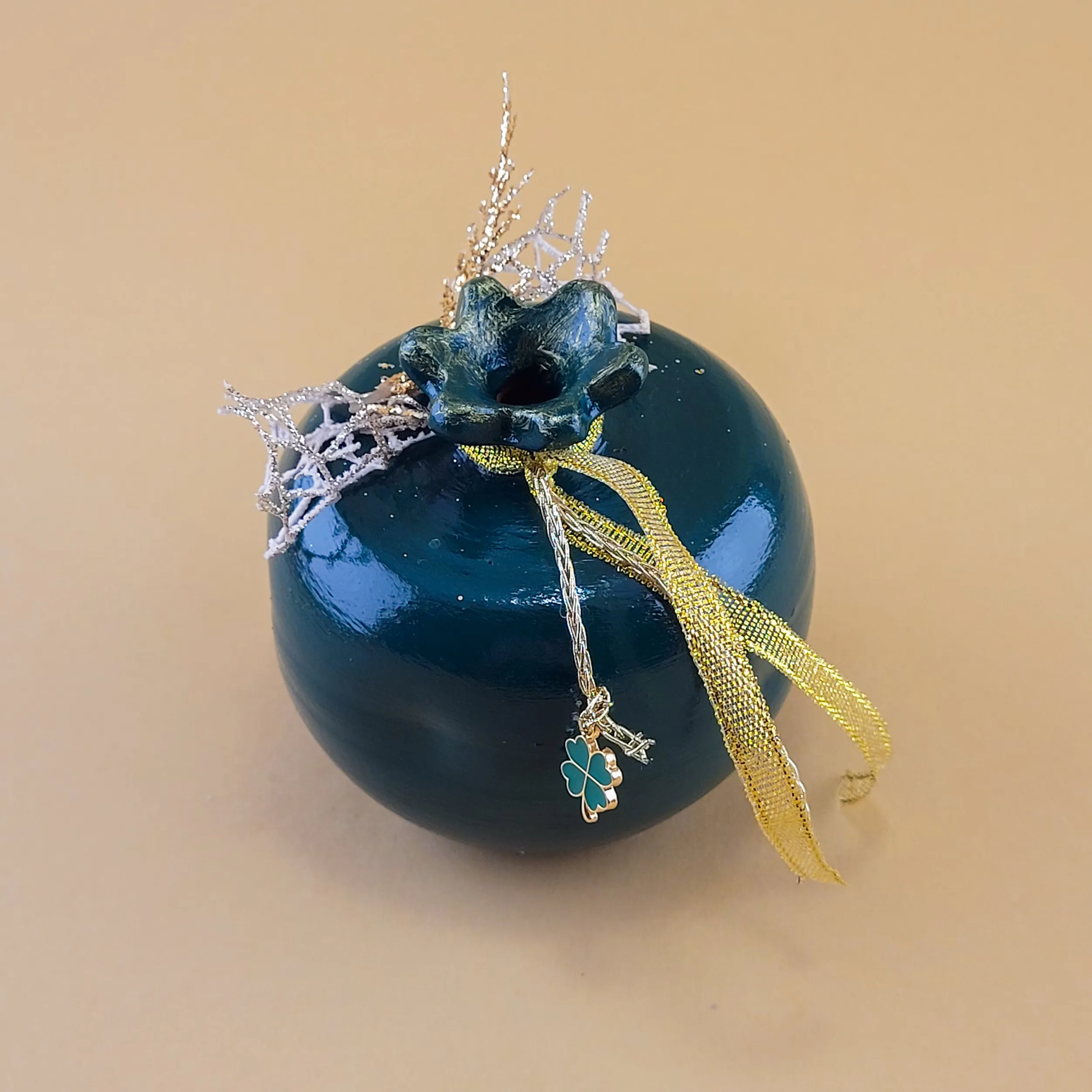 Αυτό το κεραμικό ρόδι με γυαλιστερό σκούρο πράσινο φινίρισμα είναι το απόλυτο σύμβολο τύχης και αφθονίας. Το διακοσμητικό κορδόνι σε χρυσό χρώμα και το μικρό κρεμαστό τυχερό τετράφυλλο δίνουν μια κομψή πινελιά, καθιστώντας το τέλειο δώρο για το νέο έτος. Ιδανικό για τη διακόσμηση τραπεζιού, ραφιού ή ως δώρο για αγαπημένα πρόσωπα.