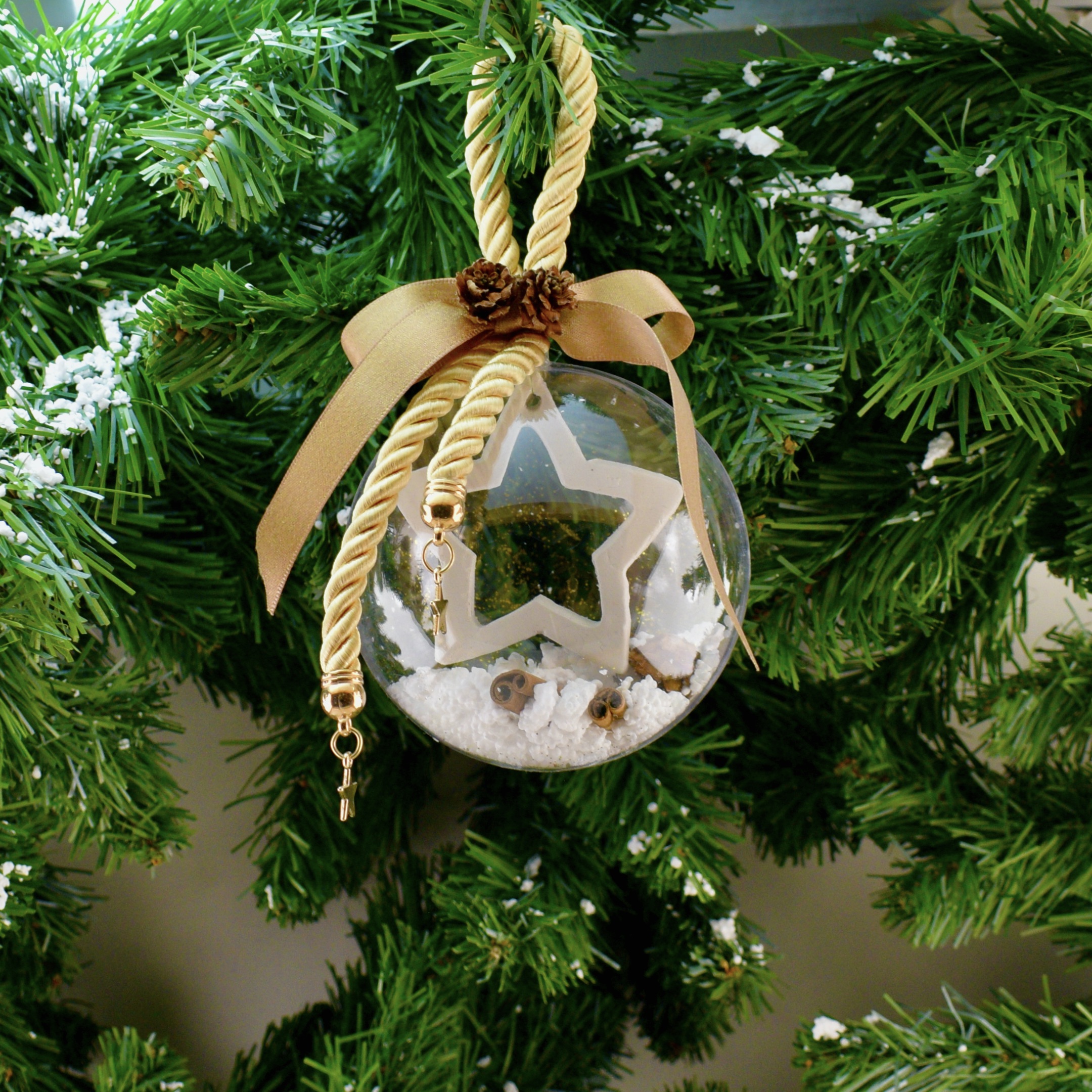Χριστουγεννιάτικη μπάλα με χειροποίητο πήλινο στοιχείο αστέρι.