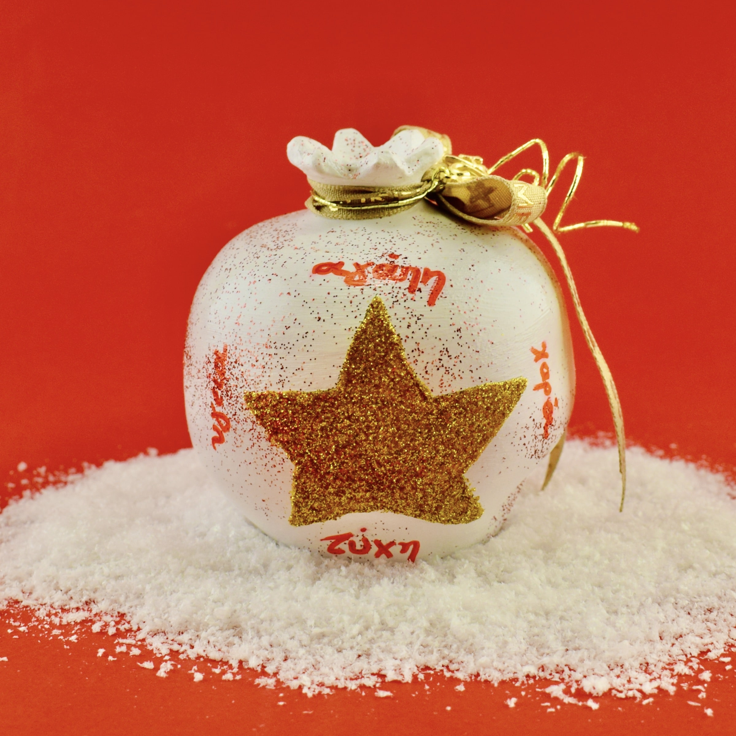 Αυτό το χειροποίητο χριστουγεννιάτικο ρόδι είναι φτιαγμένο από πηλό και “Αγαπη χάρα τύχη υγεία” είναι ζωγραφισμένο στο χέρι με ζωντανά χρώματα και περίτεχνα σχέδια.