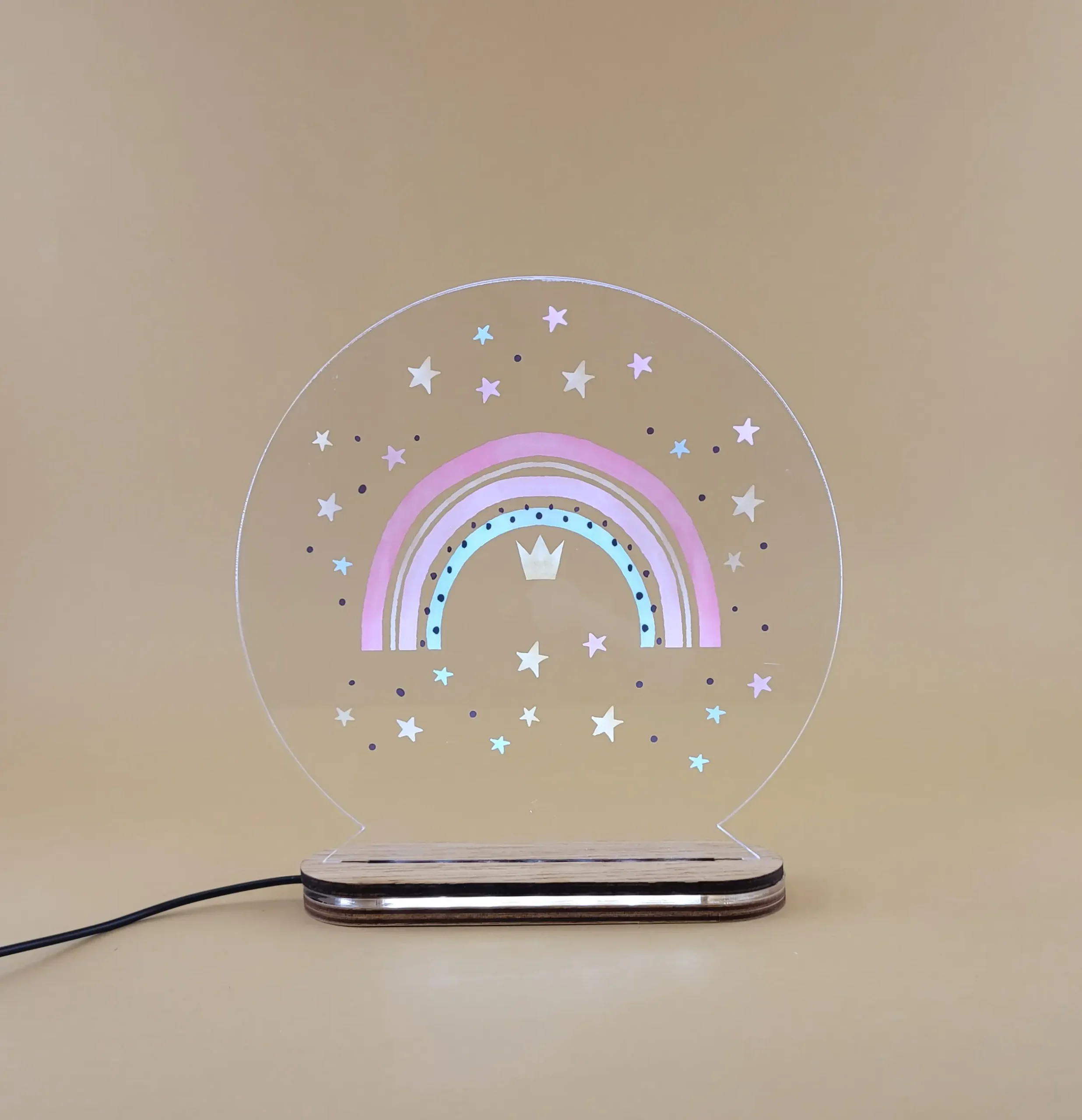 Αυτό το επιτραπέζιο φωτιστικό Plexiglas LED με oυράνιο τόξο είναι ένα χαριτωμένο και διασκεδαστικό διακοσμητικό στοιχείο για το παιδικό δωμάτιο ή το γραφείο. Το φωτιστικό LED 5V USB είναι ασφαλές για χρήση από παιδιά και η θερμή λευκή λάμψη του δημιουργεί μια χαλαρωτική ατμόσφαιρα.