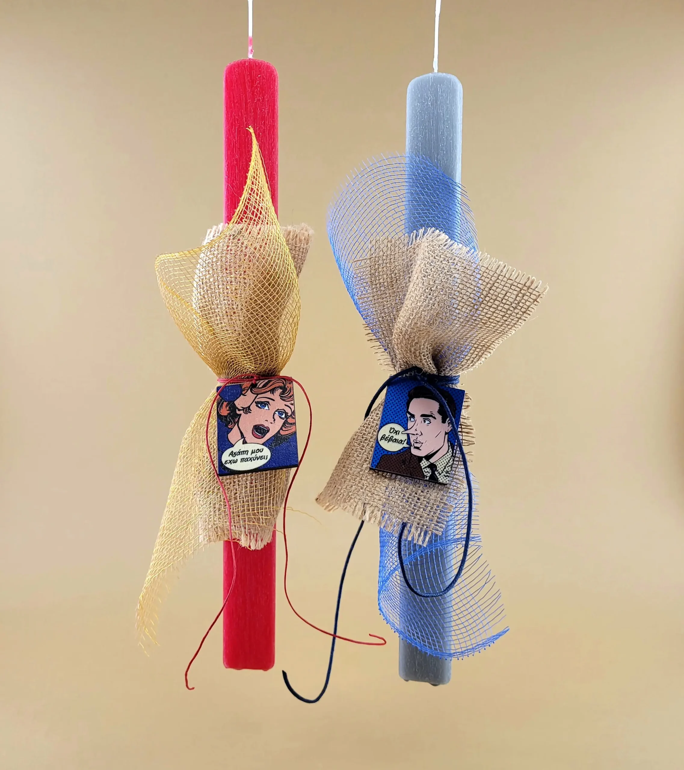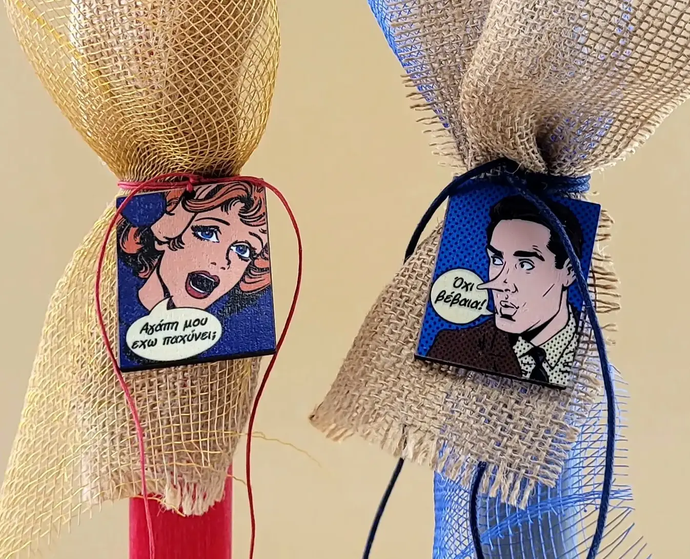 Ποιος είπε ότι οι λαμπάδες πρέπει να είναι σοβαρές; Το σετ “Pop Art Dialogue” της Anna’s Art Pack είναι σχεδιασμένο για ζευγάρια που μοιράζονται το ίδιο χιούμορ και θέλουν να κάνουν τη διαφορά το βράδυ της Ανάστασης!