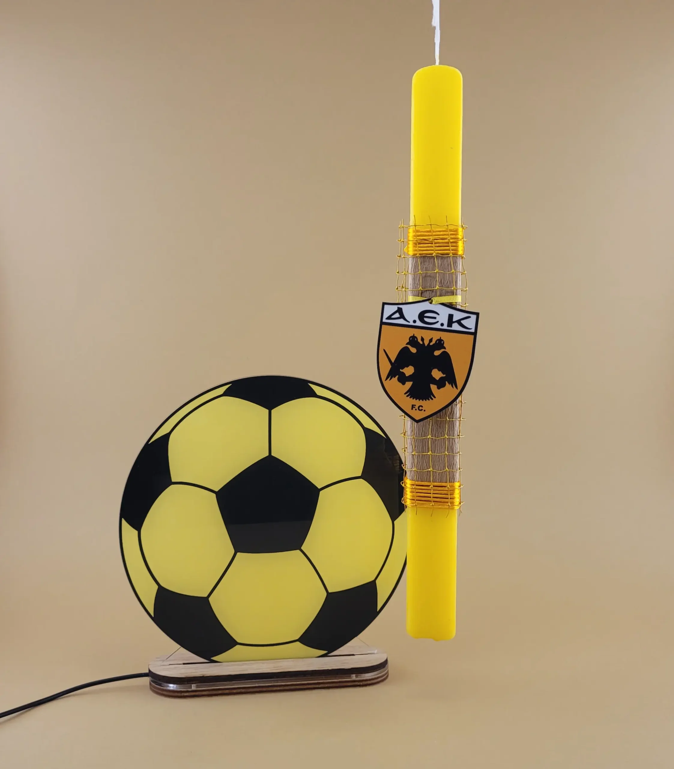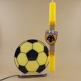• Η Λαμπάδα: Χειροποίητη αρωματική λαμπάδα σε κίτρινο χρώμα, στολισμένη με κορδέλες στα χρώματα της ομάδας.