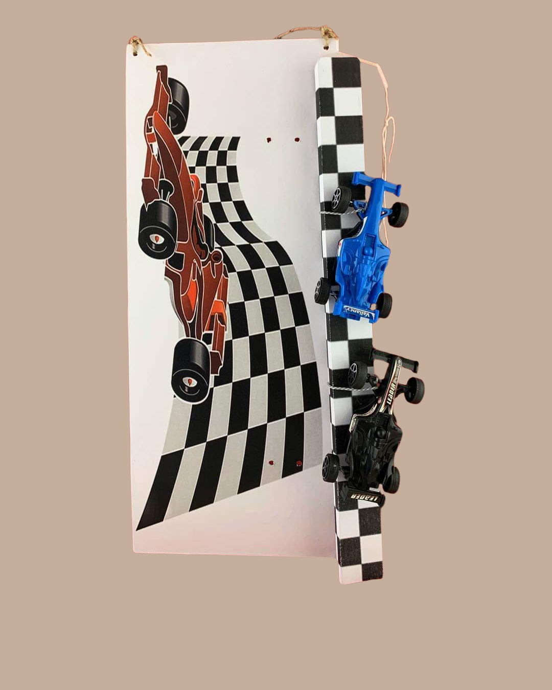 • Η Βάση-Κάδρο: Το σετ περιλαμβάνει μια χειροποίητη ξύλινη βάση στήριξης, διακοσμημένη επίσης με την τεχνική ντεκουπάζ και θέμα F1.