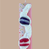 • Artisanal Σχεδιασμός: Η βάση της λαμπάδας σε απαλό ροζ χρώμα είναι στολισμένη με πολύχρωμα sprinkles, θυμίζοντας λαχταριστό γλάσο.