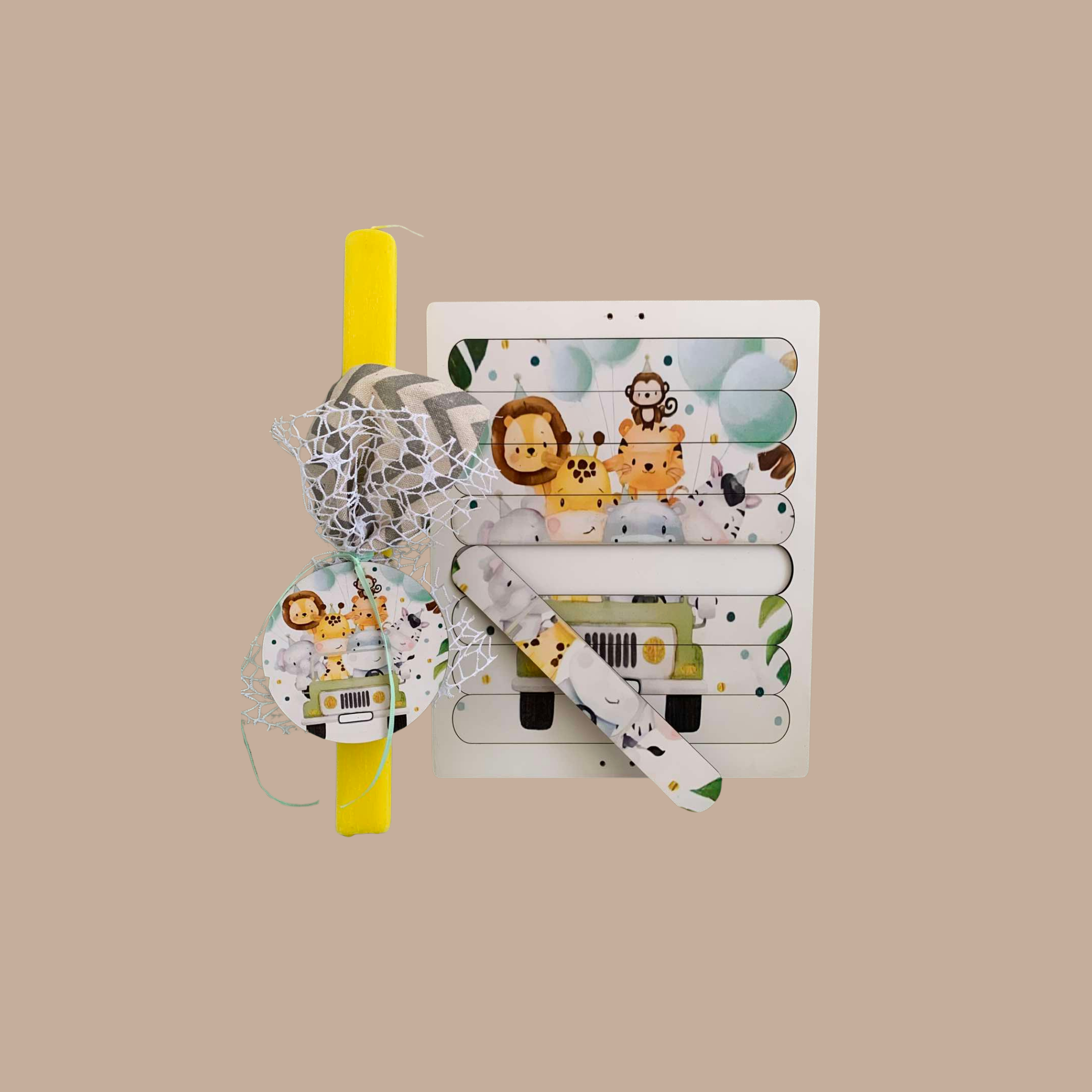 • Το Παιχνίδι: Πάνω στη λαμπάδα είναι τοποθετημένο ένα ποιοτικό ξύλινο παζλ με χαριτωμένα ζωάκια, ιδανικό για την ανάπτυξη των λεπτών κινητικών δεξιοτήτων των μικρών παιδιών.