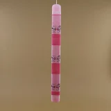 • Η Λαμπάδα: Μια αρωματική ξυστή λαμπάδα σε απαλή ροζ απόχρωση, στολισμένη με κορδέλες που συμπληρώνουν αρμονικά το σύνολο.