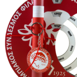 • Ξύλινο Επιτραπέζιο Ημερολόγιο: Μια πρωτότυπη ξύλινη κατασκευή σε σχήμα μισοφέγγαρου με το έμβλημα του Ολυμπιακού και το έτος ίδρυσης (1925). Διαθέτει περιστρεφόμενους δίσκους για τη ρύθμιση της ημέρας, του μήνα και της ημερομηνίας, καθιστώντας το ένα “αιώνιο” ημερολόγιο.