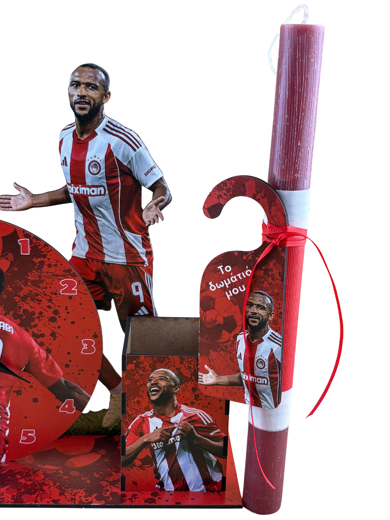 Φέτος το Πάσχα, κάντε τη διαφορά με το απόλυτο δώρο για τους λάτρεις του θρύλου! Ένα μοναδικό, χειροποίητο ξύλινο σετ γραφείου αφιερωμένο στον κορυφαίο σκόρερ, Ayoub El Kaabi, που θα διακοσμήσει το παιδικό δωμάτιο και θα ενθουσιάσει κάθε φίλαθλο.