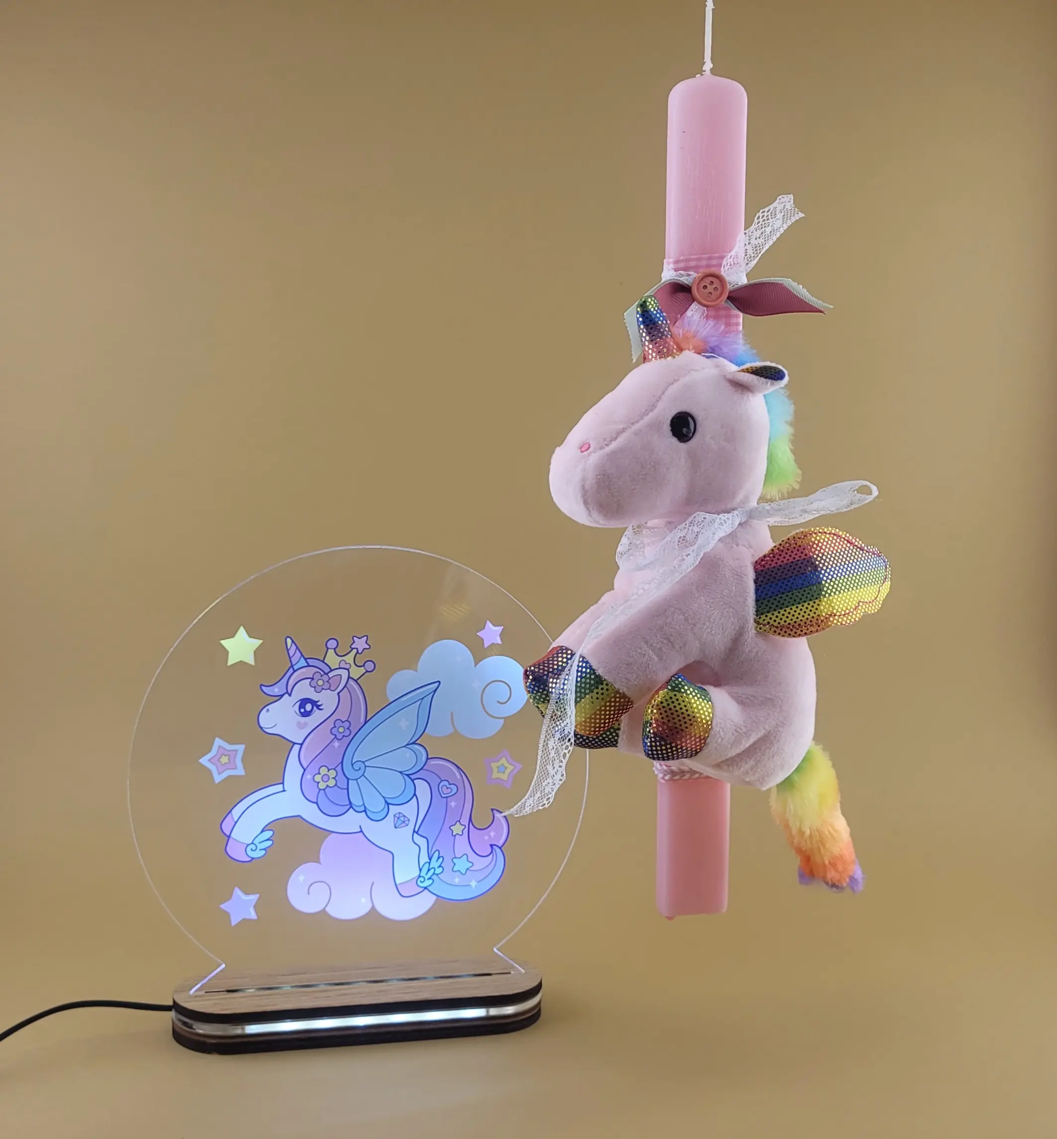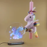 • Το Λούτρινο: Πάνω στη λαμπάδα θα βρείτε ένα πανέμορφο λούτρινο αρκουδάκι μονόκερο, έτοιμο για ατελείωτες αγκαλιές.