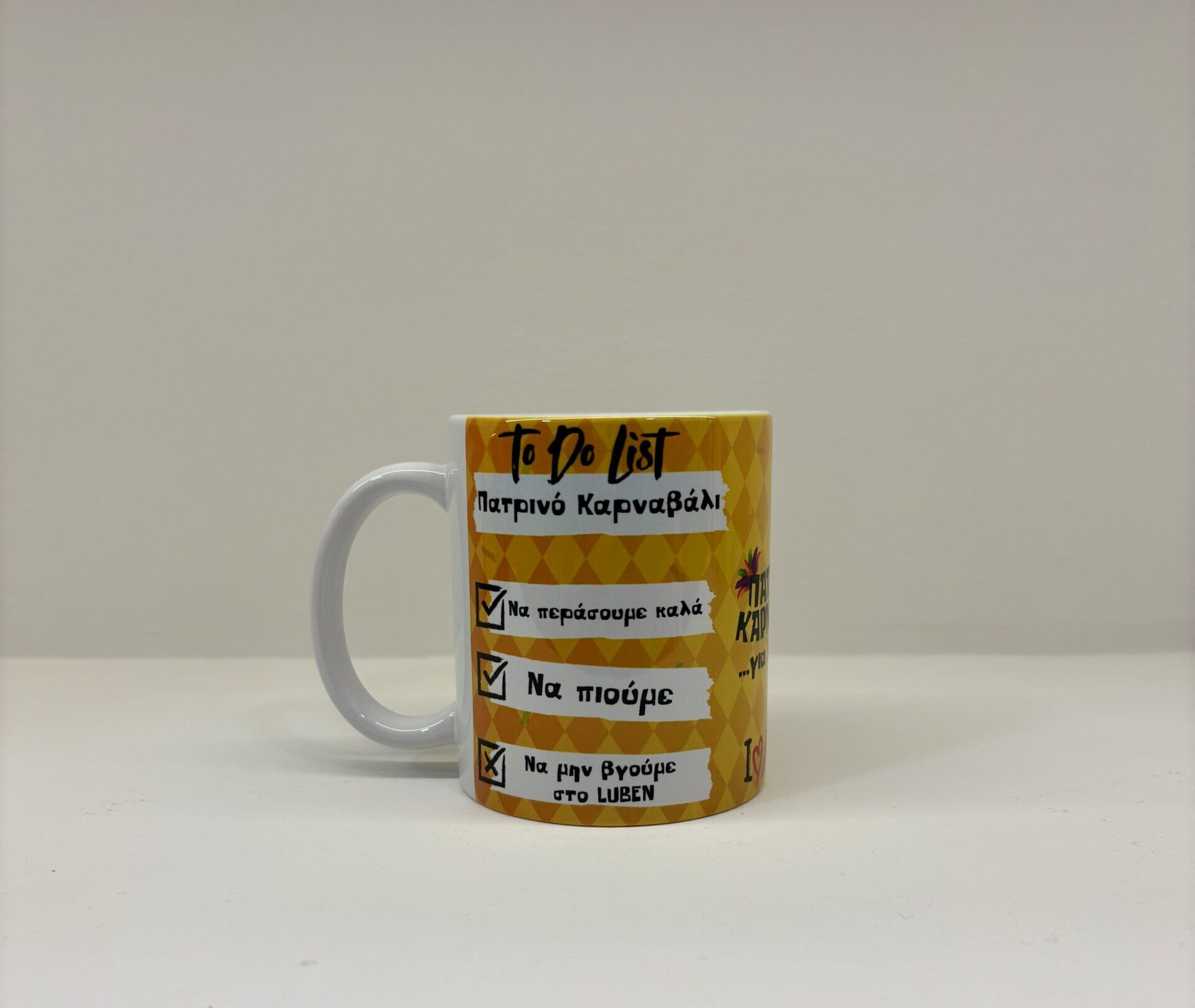 Ξέρεις ότι είναι Καρναβάλι όταν η μεγαλύτερη σου αγωνία είναι να περάσεις καλά, αλλά η ακόμα μεγαλύτερη είναι… να μην σε πετύχει η κάμερα και καταλήξεις viral στο Luben! Αυτή η κούπα αποτυπώνει την ωμή αλήθεια κάθε Πατρινού καρναβαλιστή με τον πιο fun τρόπο.